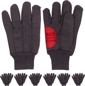 12 Pack Red Fleece Lined Brown Jersey Gloves 10" Winter Work Gloves 16OZ with Elastic Wrist Gunn Cut Pattern; Plain Breathable Glove; Protective Indus