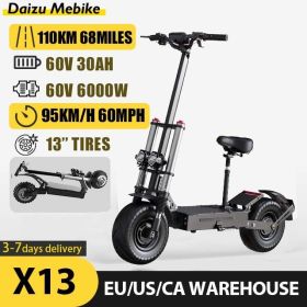 Max 100 KM/H Electric Scooter 6000W Motor for Adults 13 Inch Tire Electric Scooter Strong Dual Motor Escooters Powerful Off Road (Color: Super X13-30Ah)