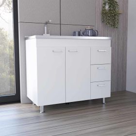 Napoles Utility Sink With Cabinet, Double Door, One Shelf -White