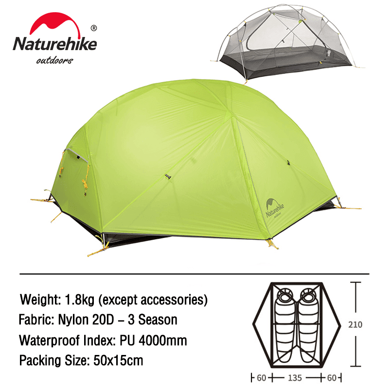 Home > Naturehike Mongar Tent 2 Person Ultralight Travel Tent Double Layer Waterproof Tent Backpacking Tent Outdoor Hiking Camping Tent