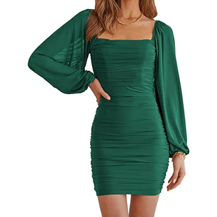Mesh Long Sleeve bodycon dress; sexy mini dress; Sexy tight dress; Fashion ruched dress; sexy party club bodycon dress; Back Zipper; Square neck stretch fall dress; fashion sheath dress.